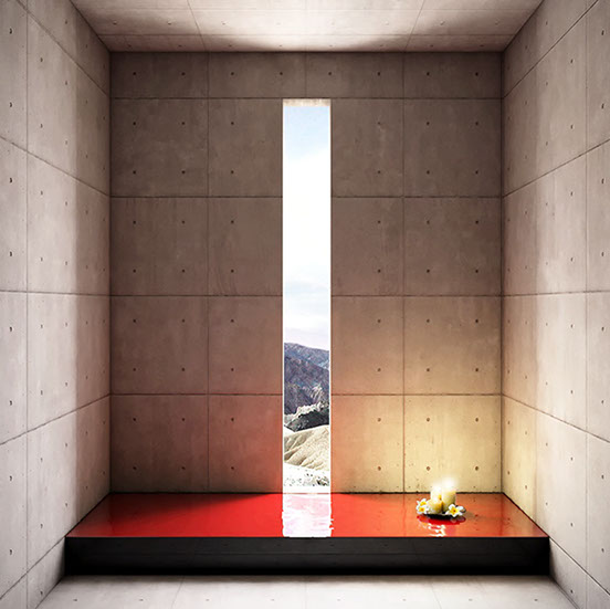 CAPPELLA PRIVATA Progettare una cappella privata è un po' come Progettare un piccolo monumento dove le persone vanno per raccogliersi in religioso silenzio. Materiali semplici, forme lineari, per concentrarsi sul vero prodigio che è il paesaggio naturale visibile da una apertura verticale, vero luogo di tradizione tra terreno e divino.